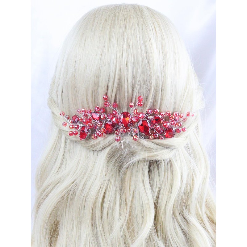 Brihasory Bride Wedding Hair Comb Rhinestone Bridal Hair Accessories Flower Hair Piece Party Prom Valentine Day Side Comb Crystal Hair Clips for Women and Girls Hair Decoration(Red)
