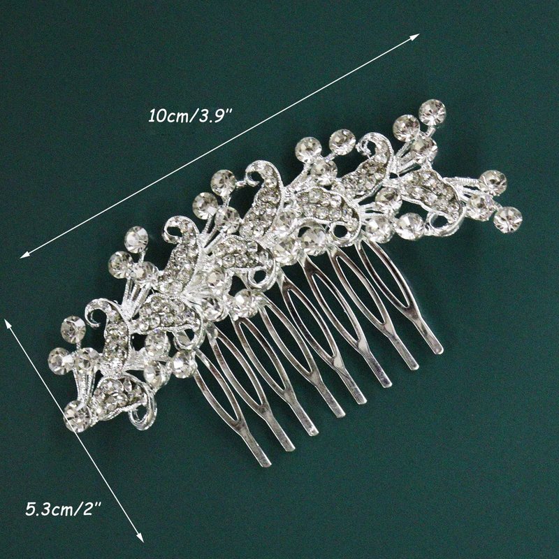 Brihasory Crystal Bride Wedding Hair Comb Silver Rhinestone Bridal Hair Accessories for Bride Party Prom Head Pieces Flower Hair Sides Elegant Hair Clips for Women and Girls Bridesmaids Gifts