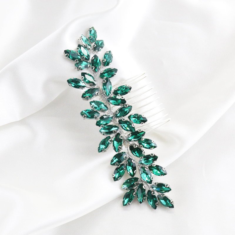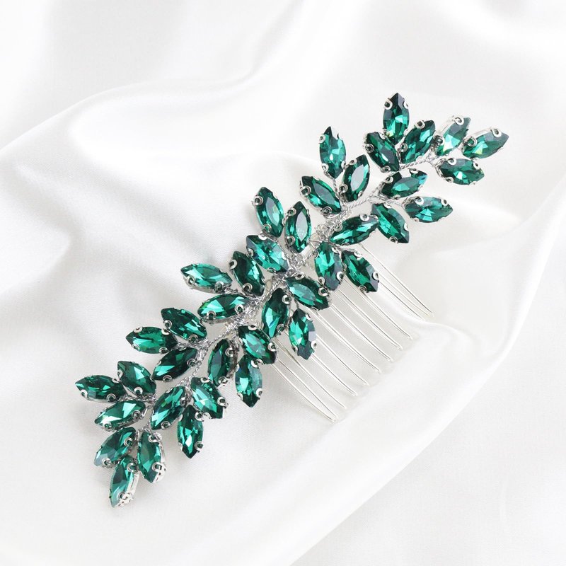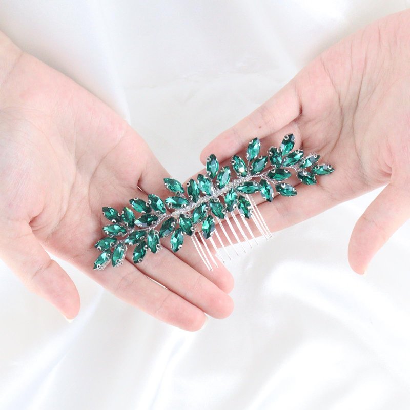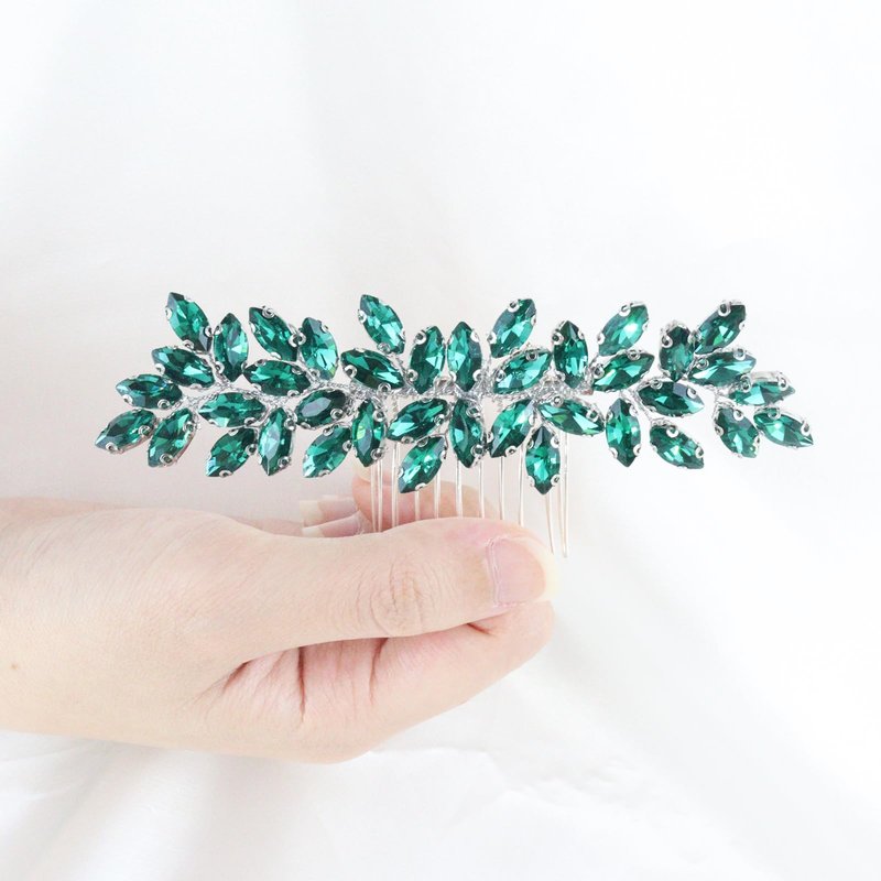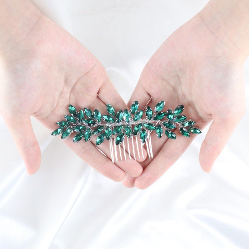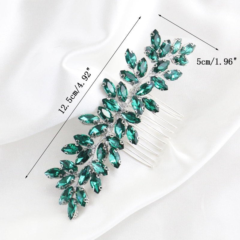Brihasory Luxurious Wedding Hair Comb Full Rhinestones Bride Hair Accessories for Party Prom Bridal Side Hair Combs for Women Bride Girls Hair Decoration(Green)