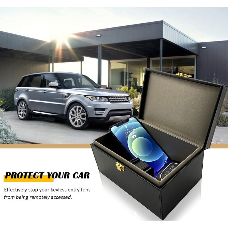 - STOP KEYLESS CAR THEFT NOW - Our premium car theft prevention box is lined with a high-quality material that stops any signal leaving the box. Simply placing your key In to the closed faraday box will prevent your car key signal from being accessible by thieves. Protecting your car at all times.