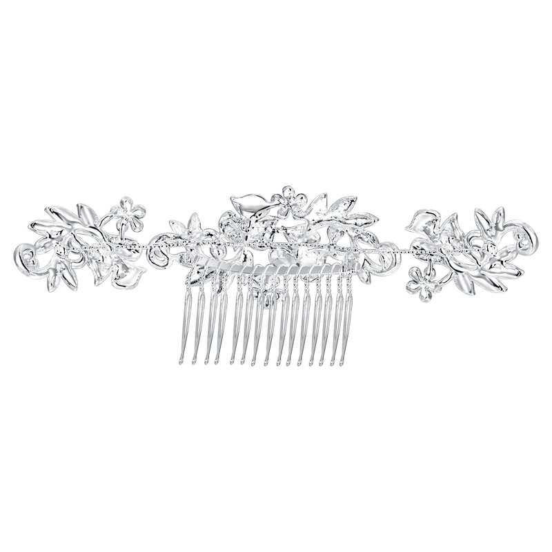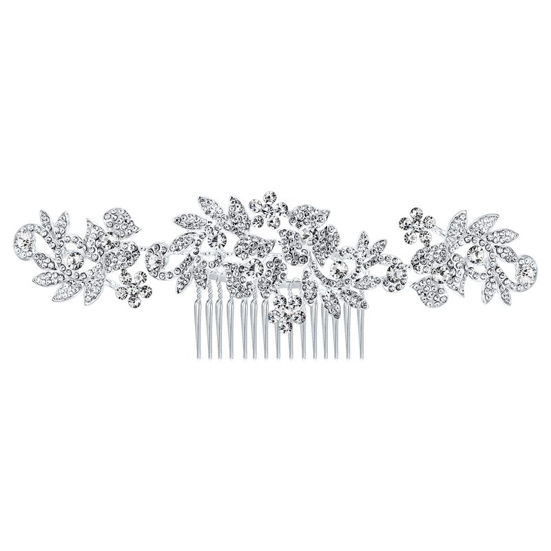 BriLove Wedding Hair Accessories Bridal Hair Comb Bohemian Boho Crystal Cluster Flower Vine Leaf Bling Comb for Bride and Women Clear Silver-Tone