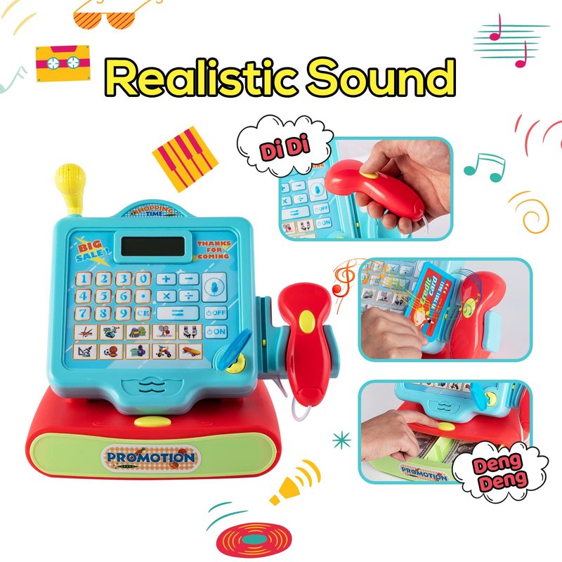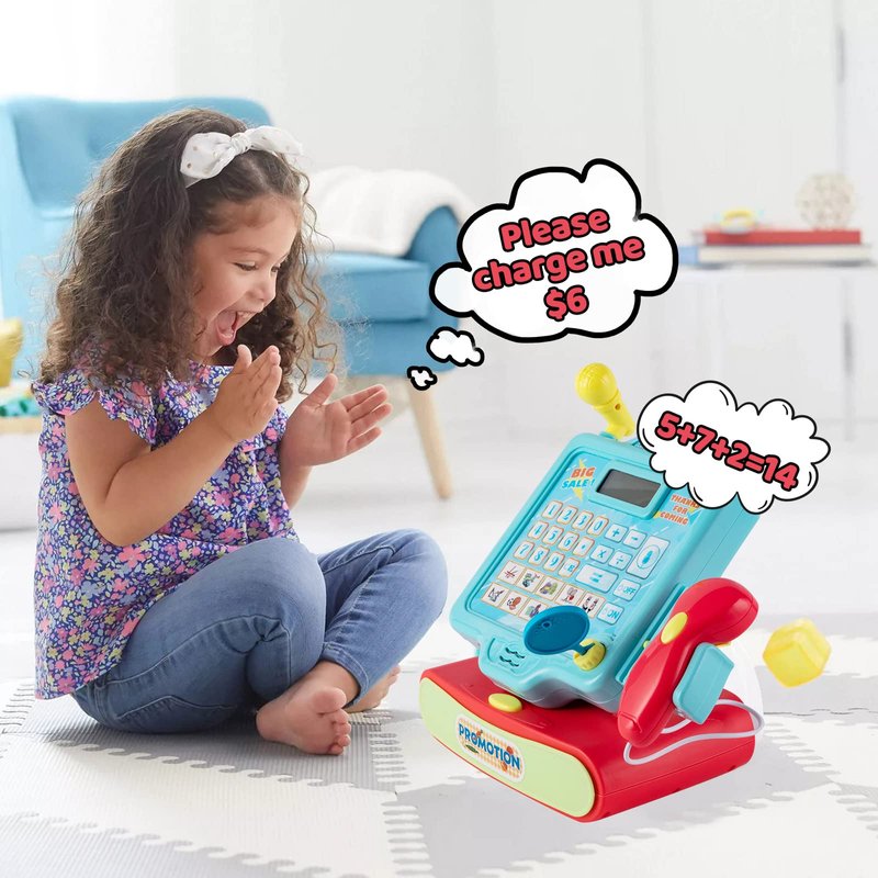 - 【Kids-friendly & Durable Materials】: Made of premium ABS & PP materials, this toy cash register is durable enough for long service life. This cash register toy can accompany your child's growth. Meanwhile, the edges of this cash register are rounded which will provide your lovely toddler with all-round protection.