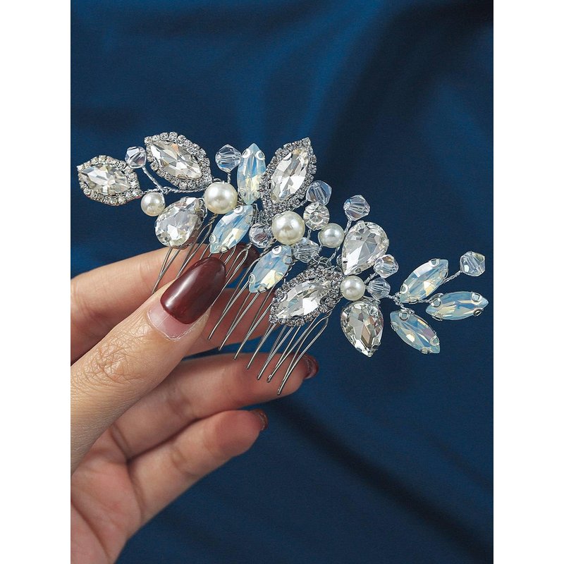 - Prom bridal hair side comb is classically designed with hand wired branches of pearls & crystals that sparkle from all angles. This piece is suitable as a side or back comb accessory in nearly any hairstyle.