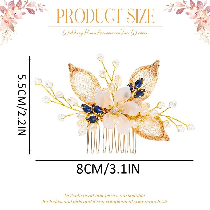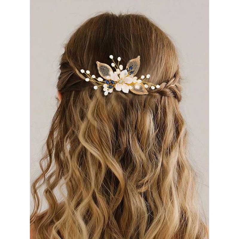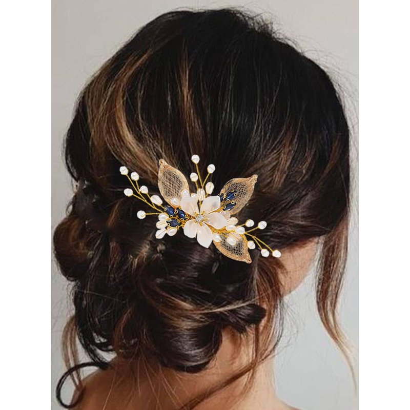 - Festival floral hair side comb color is gold. Hair decoration will great work for all kinds of hairstyles. Golden hair accessories can bring you hope and warmth.