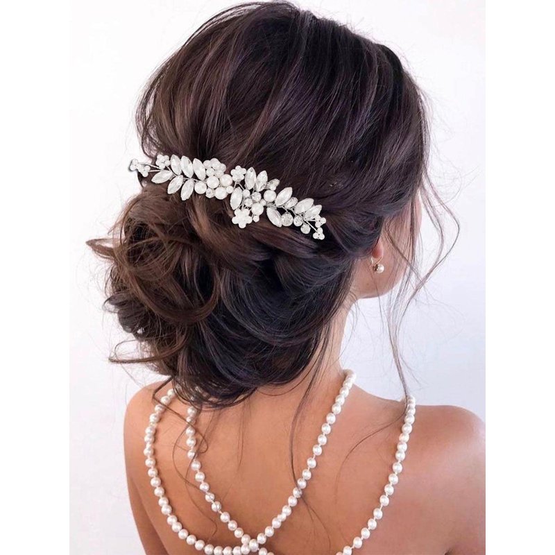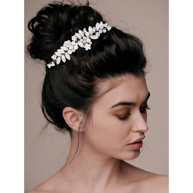 Brishow Rhinestone Bride Wedding Hair Comb Silver Pearl Bridal Hair Piece Crystal Prom Party Hair Accessories for Women and Girls