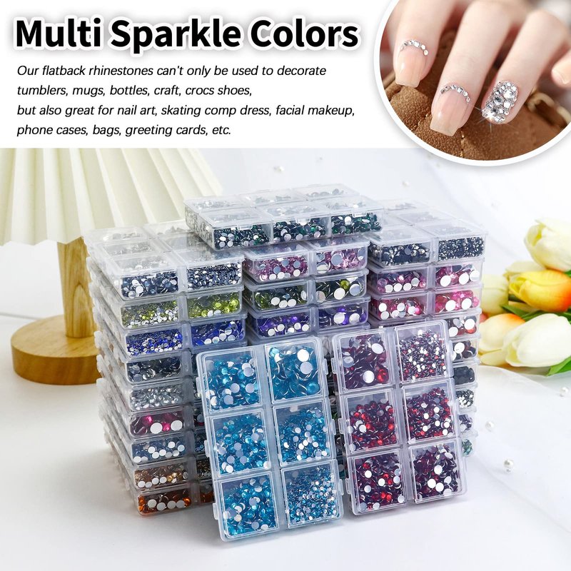- 🎀 Wide Applications: These resin flatback rhinestones can't only be used to decorate tumblers, mugs, bottles, craft, crocs shoes, but also great for nail art, skating comp dress, facial makeup, phone cases, bags, greeting cards, etc.