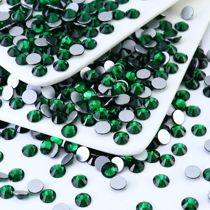 Briskbloom Flatback Crystal Rhinestones Round Gems for Nail Art and Craft Clothes Glue Fix, Emerald/Dark Green (1.9-2.0mm) SS6/1440PCS