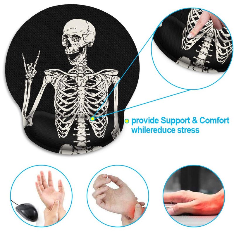 Britimes Ergonomic Mouse Pad with Wrist Support Black Human Skeleton Skull Non-Slip Rubber Base Mousepad for Home Office Gaming Working Computers Laptop Easy Typing & Pain Relief