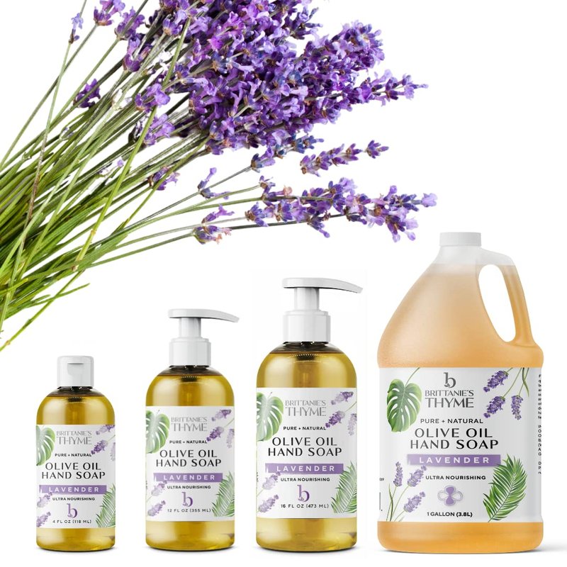 Brittanie's Thyme Organic Natural Hand Soap, 16 oz (Lavender) Moisturizing Castile Soap Made Olive Oil And Natural Luxurious Essential Oils. Vegan, Gluten & Cruelty Free,