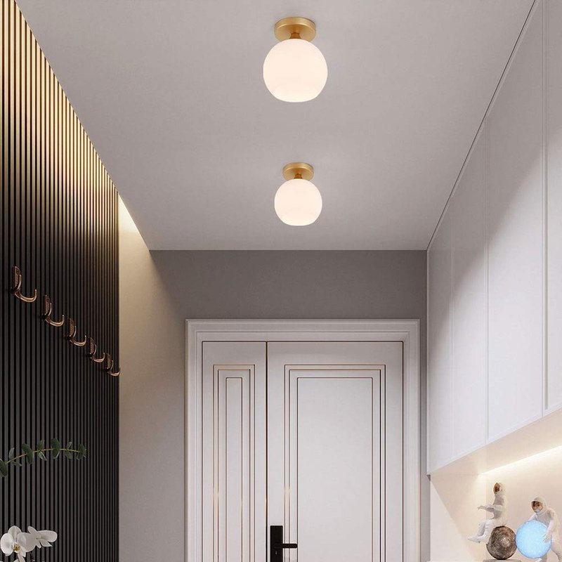 Brixury Gold Semi Flush Mount Ceiling Light Fixture with White Glass Globe Shade