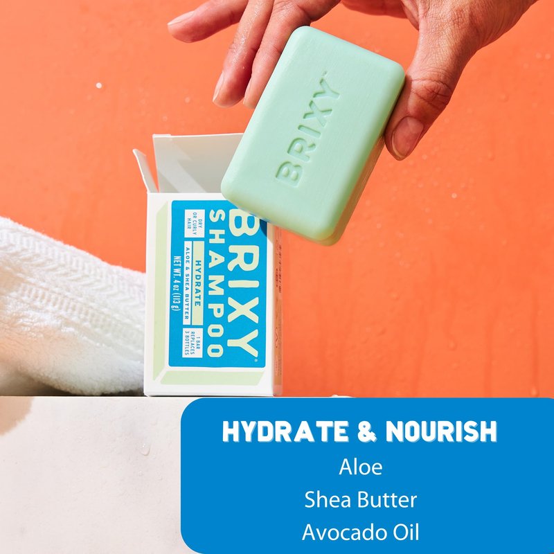 BRIXY Hydrating Shampoo Bar For Dry Or Curly Hair | Aloe, Shea Butter, & Avocado Oil | Ceramide & Niacinamide Support The Moisture Barrier | pH Balanced, Color Safe, Vegan, Plastic Free