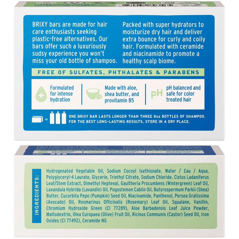 - MOISTURE BARRIER SUPPORT - This moisturizing shampoo bar for dry hair includes the BRIXY Blend - a ceramide and niacinamide complex designed to support the lipid layer that helps seal in moisture and protect against enironmental stress that causes irritation and moisture loss.
