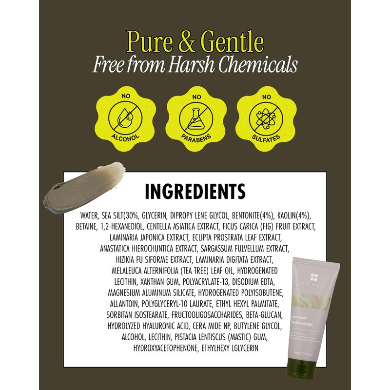 BRMUD Cardi B Mask | Recovery Mud Clay Face Mask | Hydrating & Moisturizing Pore Cleanser Korean Mask w/ 91.8% Nature-Derived Ingredients | Gentle K Beauty Wash Off Body Mud Mask (3.72 fl oz)