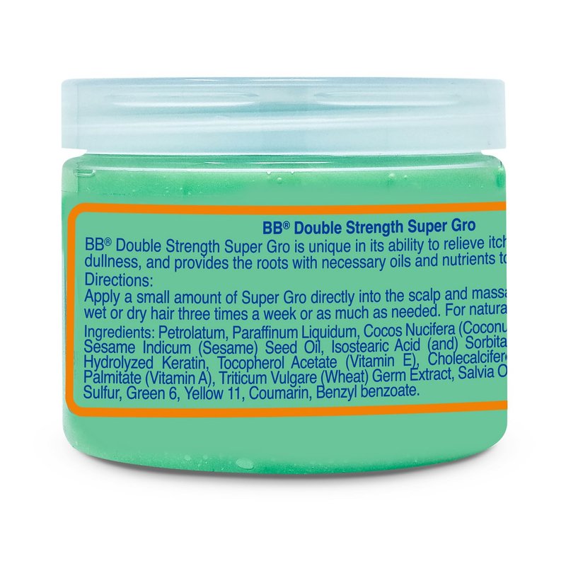 Bronner Brothers Double Strength Super Gro - Hair Treatment for Dry Itchy Scalp with Vitamin E, A & D, Coconut Oil, Sage - Nourishes Damaged Hair, Reduces Split Ends & Breakage, Intense Moisture - 6oz