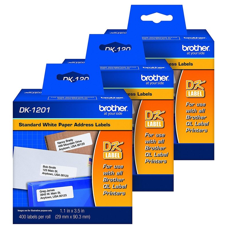 Brother Genuine DK-1201 Die-Cut Standard Address Labels, 400 Labels per Roll, 3 Rolls – for Use with All QL Label Printers