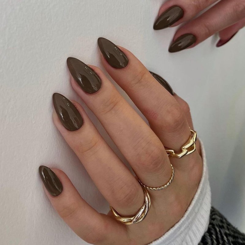 Brown Almond Shaped Nails,Press on Nails KXAMELIE Glue on Nails Almond for Women,Acrylic Nails Press on Medium Length Stick on Nails for Women Girls Daily Work Wear