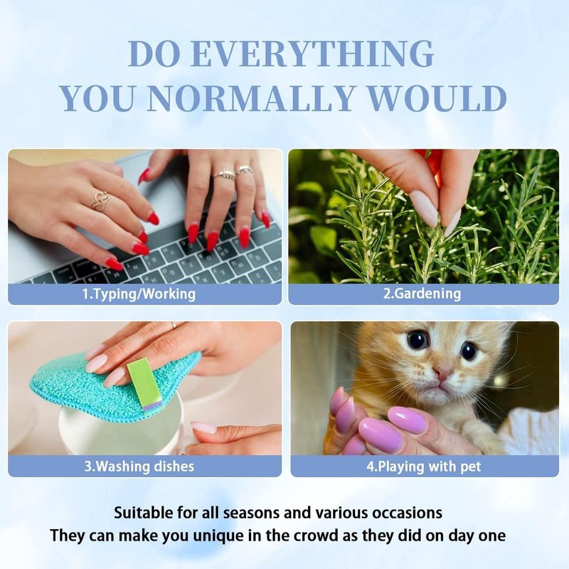 - Comfortable and Durability: Glue on nails short don't cause any harm to your natural nails. Additionally, our short almond press on nails are designed to be sturdy and long-lasting. Gel nails press on nails medium are resistant to chipping and breaking, allowing you to enjoy beautiful nails without the worry of frequent repairs or replacements. We recommend you use your nail glue and put a gel top coat on press on almond nails medium length to help them last longer.