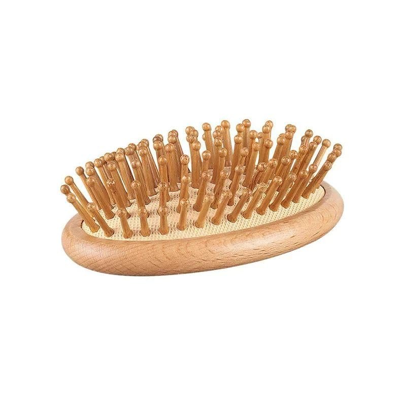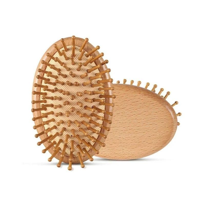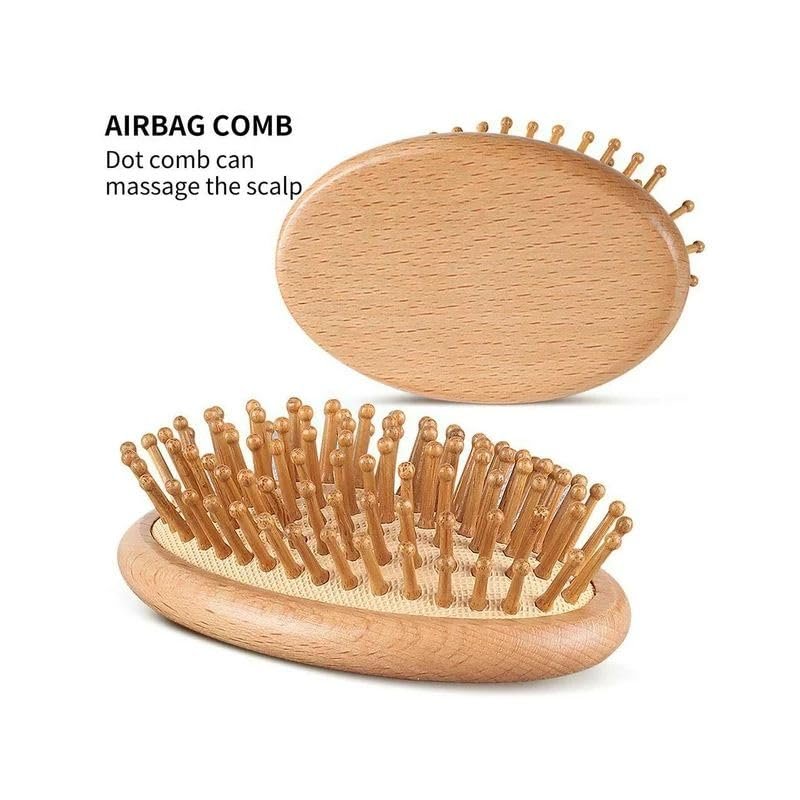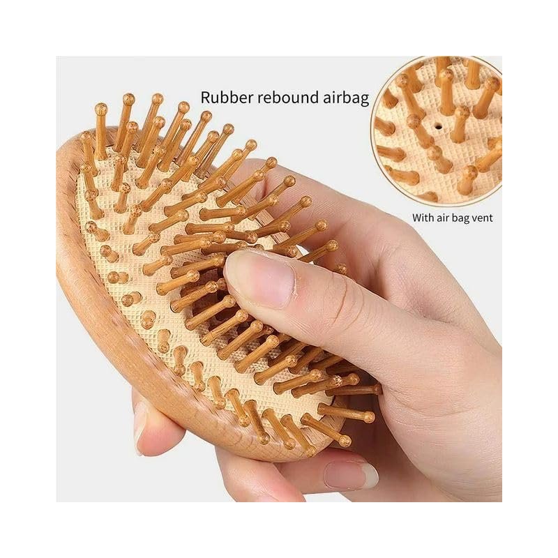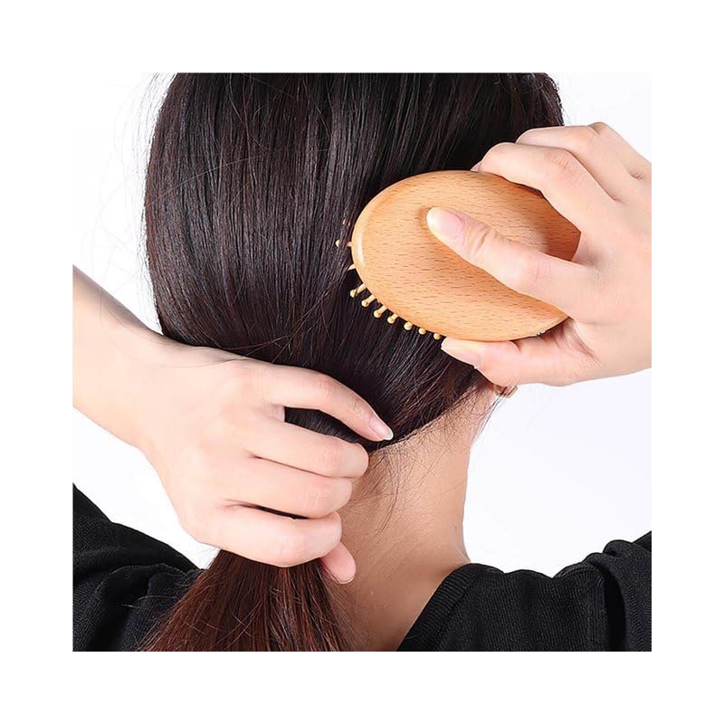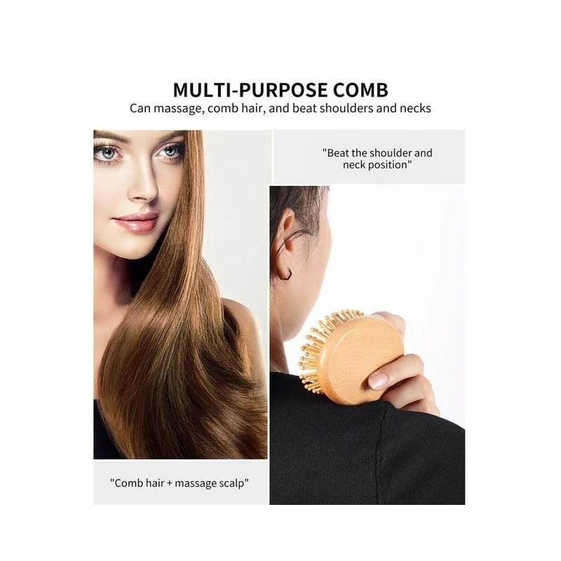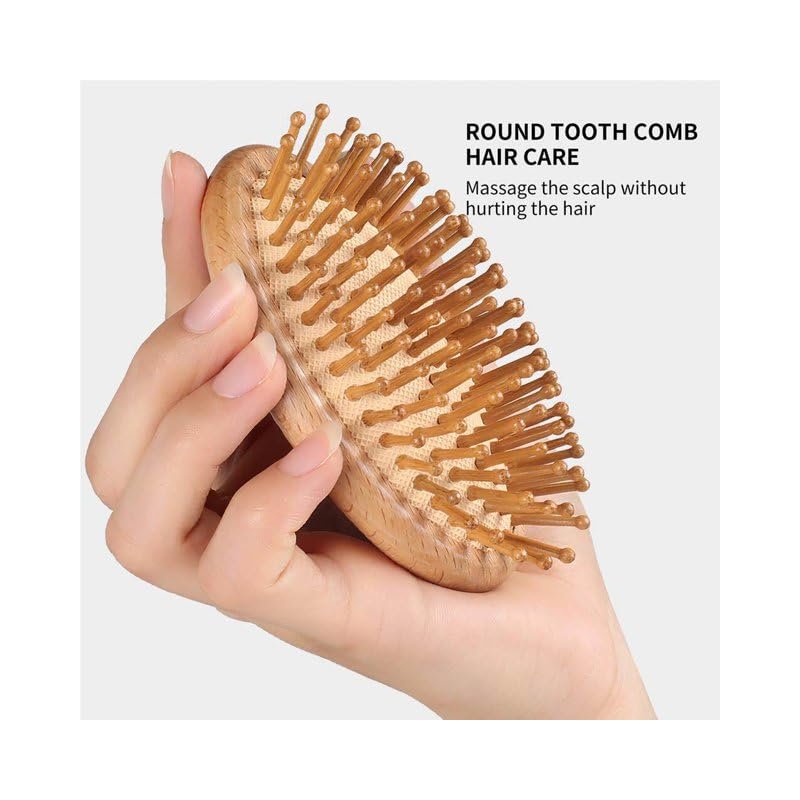 Brown Bamboo Brush for Hair Growth, Bamboo Hair Brush Massager Mini Bristles Natural Wooden Scalp Brush Detangling Hairbrush for Women, No Handle Design, Round Wood Brush Styling Tools and Appliances