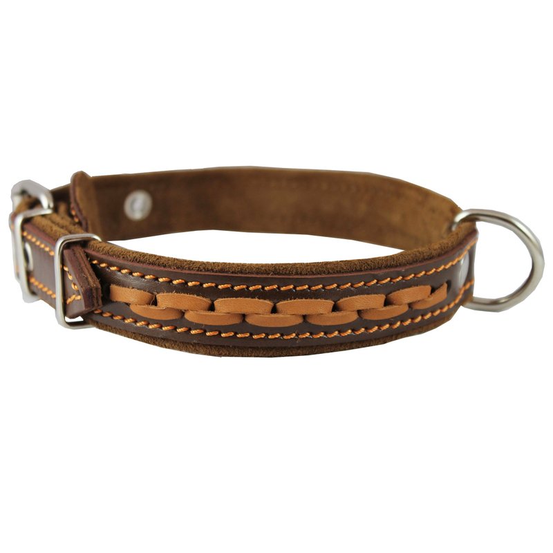 Brown Genuine Leather Braided Dog Collar, 1" Wide. Fits 14"-17" Neck.