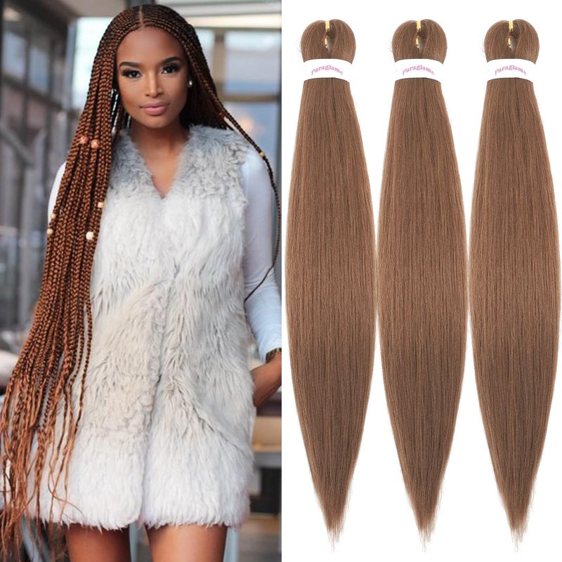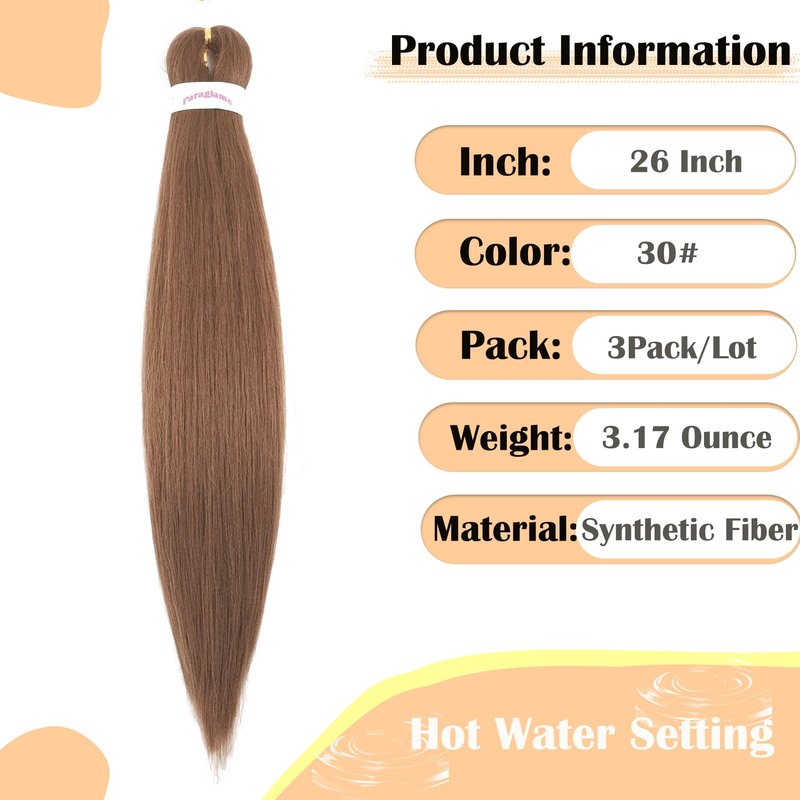 Brown Pre Stretched Braiding hair 26 Inch Colored Braiding Hair Prestretched 3 Packs Hot Water Setting Braiding Hair Extensions for Braids(30#, 26 Inch (Pack of 3))