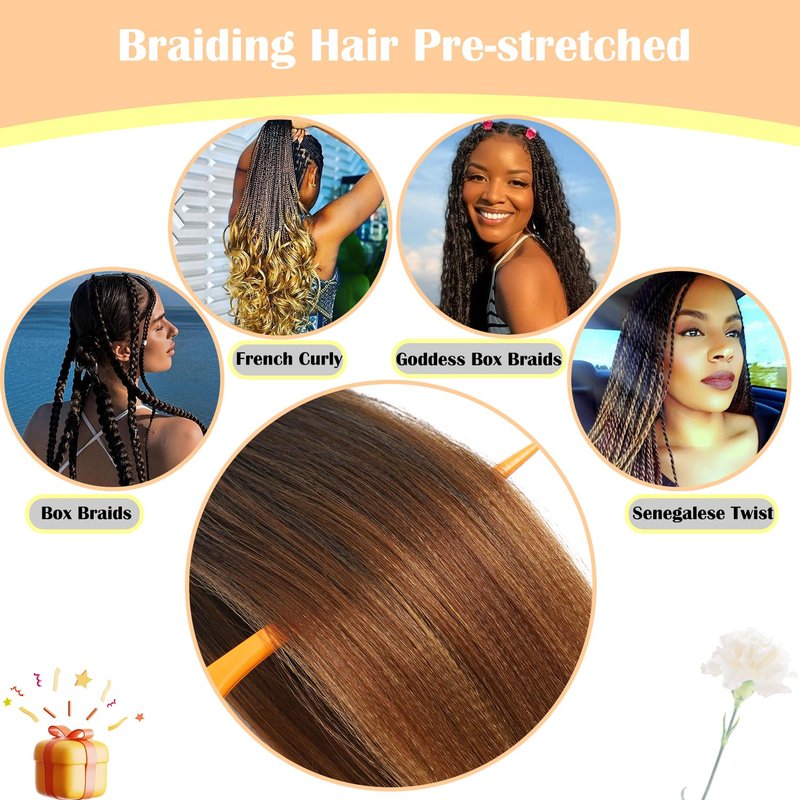 - 5.【Prestretched Braiding Hair】: Braiding hair can be Combined with Natural Hair or Used Alone to Create Unique and Personality Styles. The Braiding HairPre Stretched canbe Used for Daily, Party, Wedding, Cosplay, Birthday, Christmas etc.