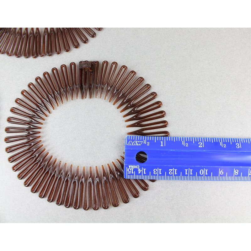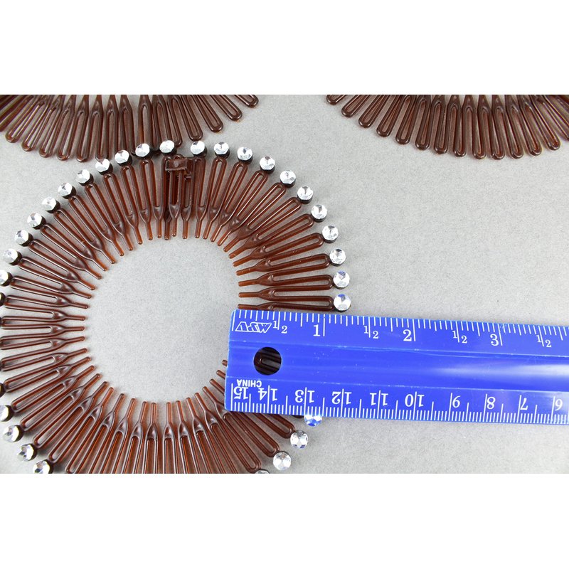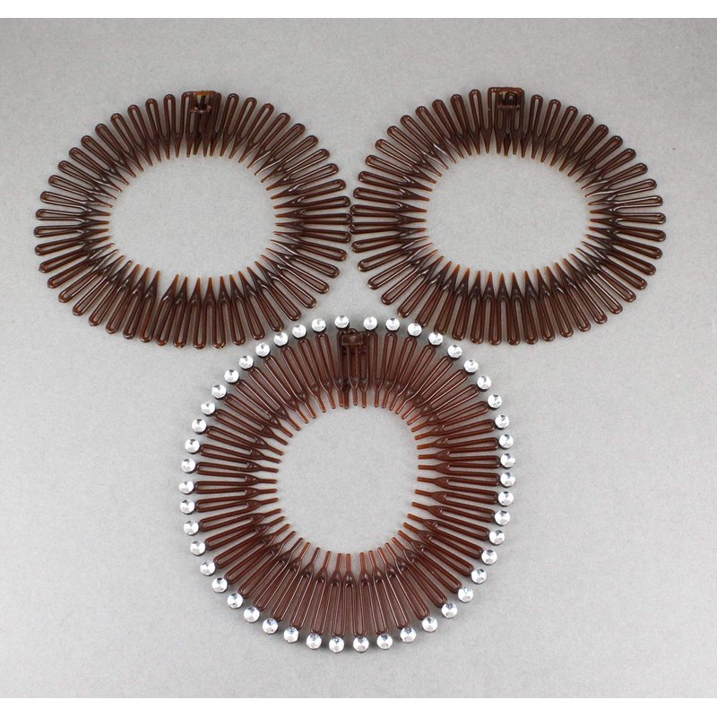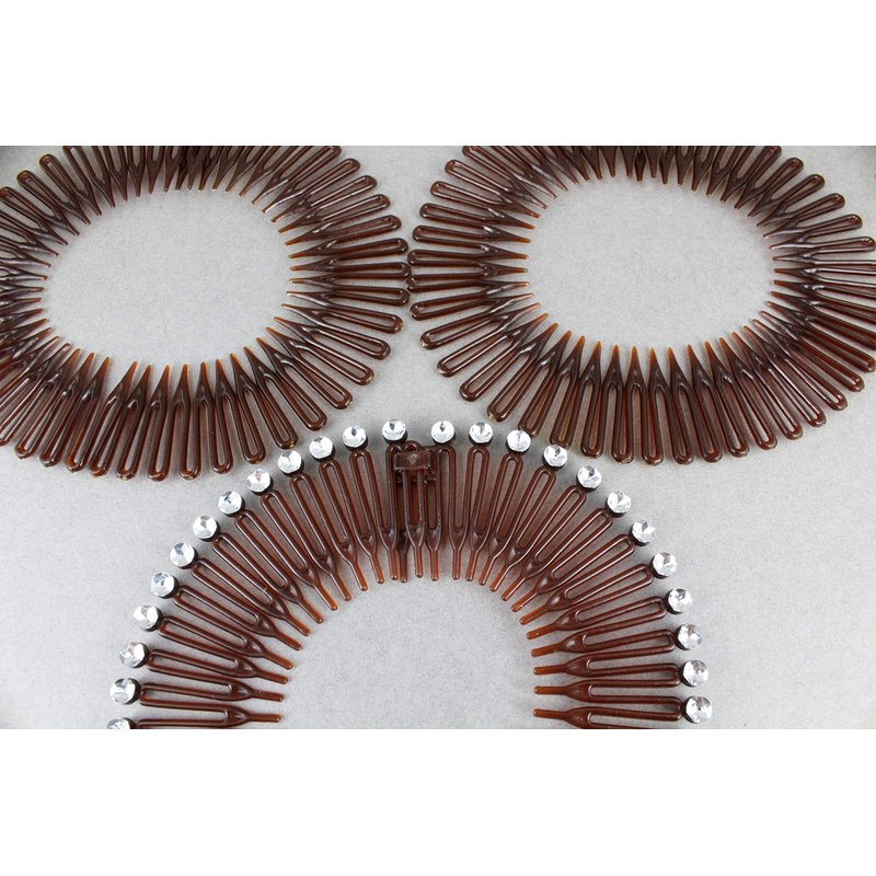- Set of 3 stretch comb headbands. 2 solid brown and 1 brown with silver accents