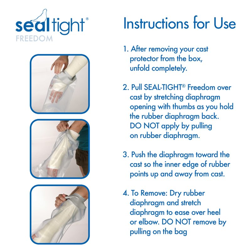 - Non-Latex Watertight Diaphragm: Stretches easily over cast or bandage to prevent leaks in the shower