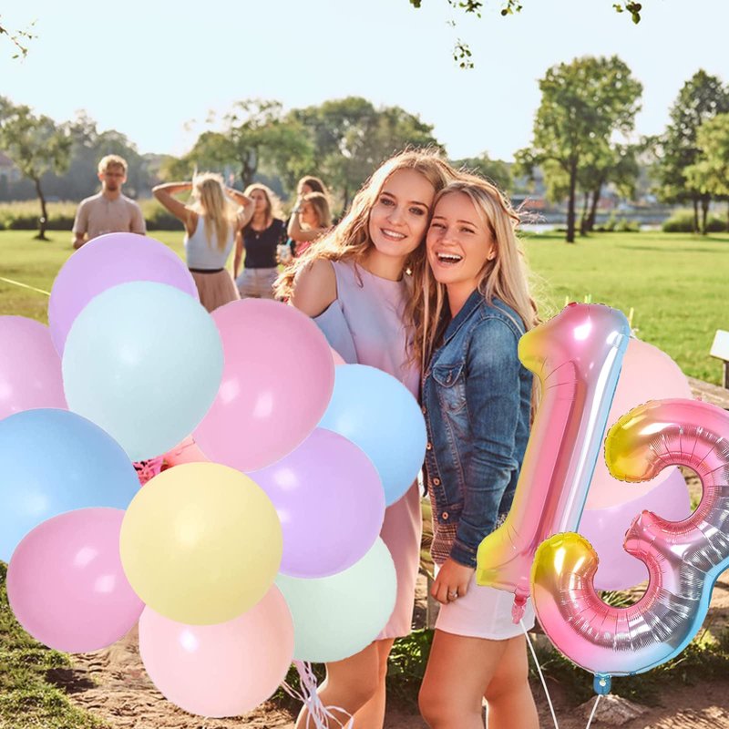BRT Bearingshui 13th Birthday Decorations for Girls Boys, 40 Inch Rainbow Gradient Number 13 Balloon, 13th Birthday Balloon, Happy Birthday Banner, Children’s 13th Birthday Party Supplies