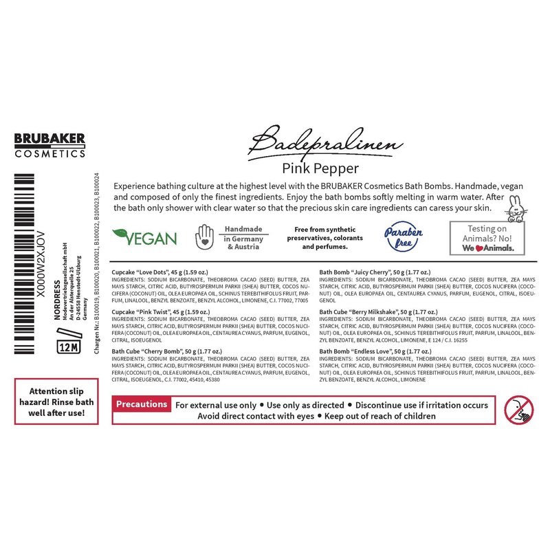 - The gift set includes 6 different Bath Bombs: Bath Cupcake „Love Dots“, Bath Cupcake Pink Twist", Bath Bomb “Cherry Bomb“, Bath Bomb "Juicy Cherry", Creme Bath Bomb "Berry Milkshake" and Bath bomb "Endless Love"