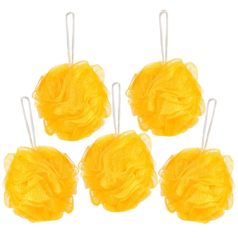 BRUBAKER Cosmetics - Premium Bath & Shower Sponge - Exfoliating Body Pouf - with String for Hanging - 5 Pack - Yellow