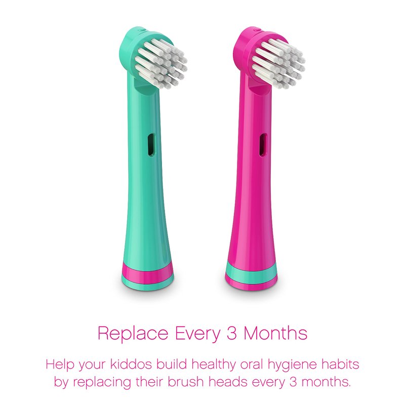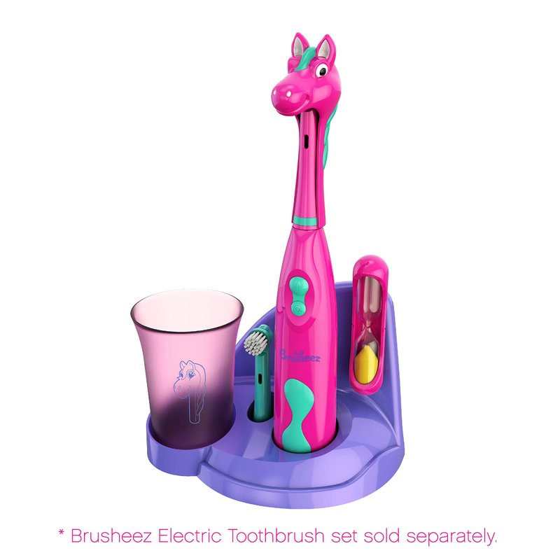 Keep your child's Brusheez electronic toothbrush working optimally with these replacement brush heads designed in colors that coordinate with your existing toothbrush set.Our replacements come in a convenient 2-pack and coordinate perfectly with your child’s Brusheez toothbrush. Product Details: Quick twist-and-click installation Compact design is perfect for reaching hard-to-clean areas of the mouth Quality tested and CPSIA approved for safe, effective cleaning Durable bristles last up to 3 months before each individual brush head needs to be replaced Compatible with Brusheez Electronic Toothbrush Set for Prancy the Pony Dentists recommend that you install a new brush head at least every 3 months or sooner if any of the following situations occur: Your child has been sick Your brush head is tattered and worn Your child has used the toothbrush to clean something other than his or her teeth