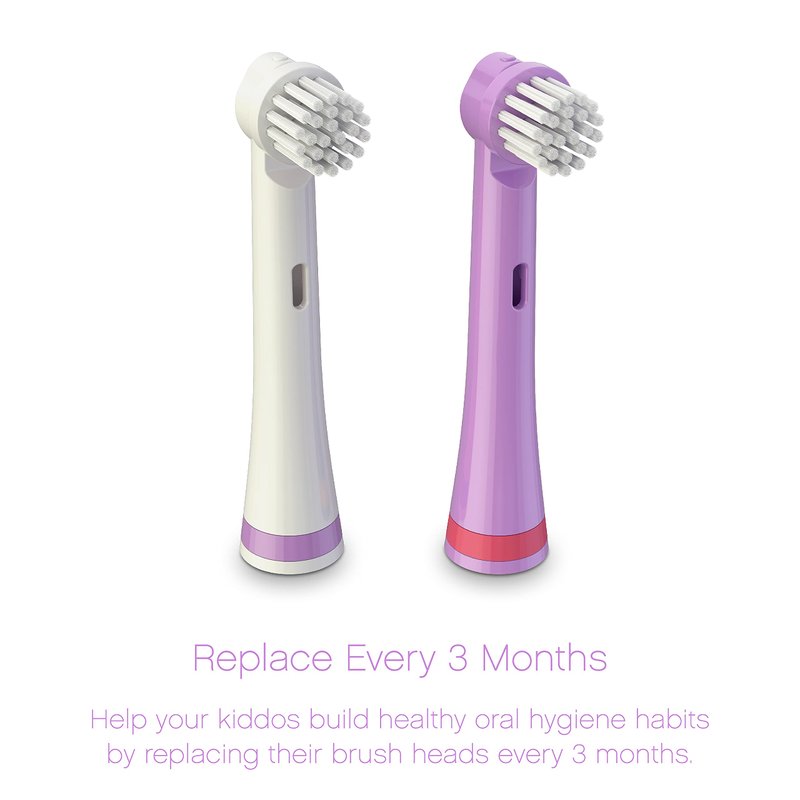 Keep your child's Brusheez electronic toothbrush working optimally with these replacement brush heads designed in colors that coordinate with your existing toothbrush set.Our replacements come in a convenient 2-pack and coordinate perfectly with your child’s Brusheez toothbrush. Product Details: Quick twist-and-click installation Compact design is perfect for reaching hard-to-clean areas of the mouth Quality tested and CPSIA approved for safe, effective cleaning Durable bristles last up to 3 months before each individual brush head needs to be replaced Compatible with Brusheez Electronic Toothbrush Set for Sparkle the Unicorn Dentists recommend that you install a new brush head at least every 3 months or sooner if any of the following situations occur: Your child has been sick Your brush head is tattered and worn Your child has used the toothbrush to clean something other than his or her teeth