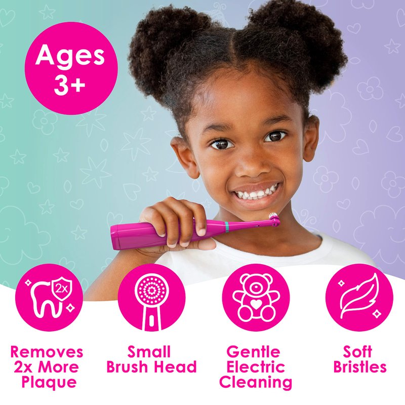 Brusheez Kids’ Electric Toothbrush Set - Safe & Effective for Ages 3+ - Parent Tested & Approved with Gentle Bristles, 2 Brush Heads, Rinse Cup, 2-Minute Timer, & Storage Base (Prancy The Pony)
