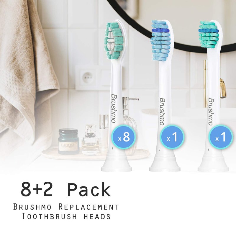 Brushmo Replacement Toothbrush Heads Compatible with Phillips Sonicare Electric Toothbrush Value Pack (8+2).