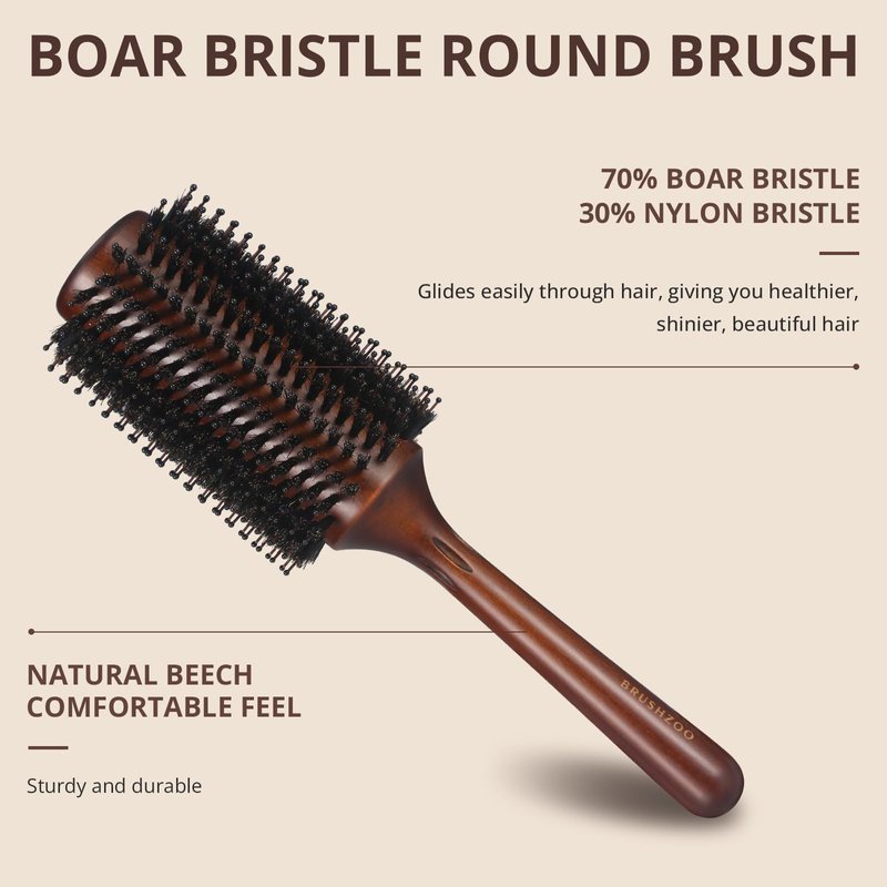 BRUSHZOO Round Brush, Boar Bristle Round Brush for Blow Drying, Add Shine/Volume, Hair Bursh with 100% pure Boar Bristle and Nylon Pins for Styling Curling and Straightening (2.2 Inch)