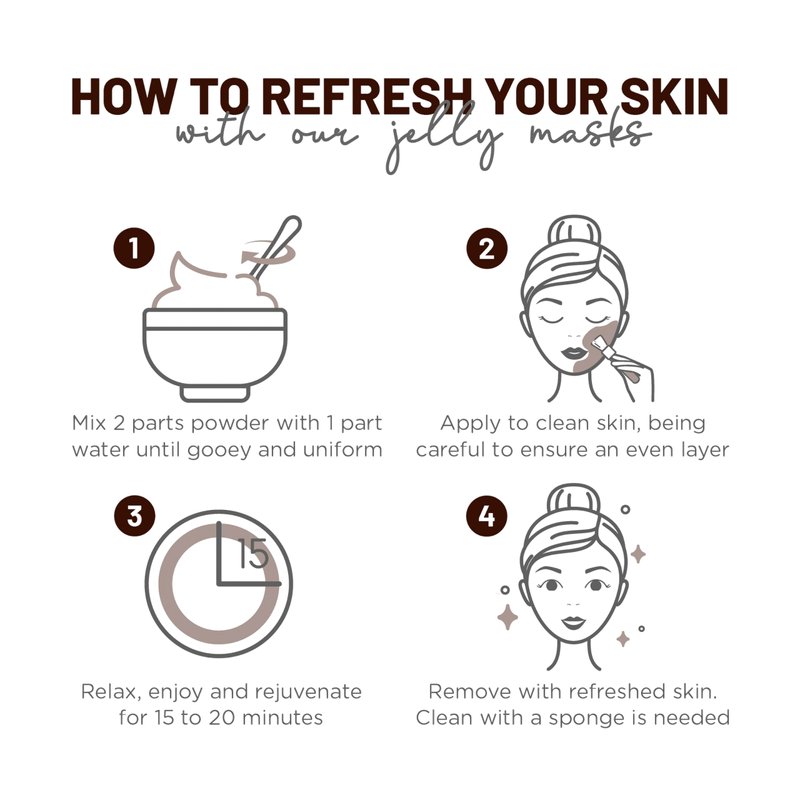 - FULL BODY: We provide premium formulated Jelly Mask that is efficient not only for face care but also an excellent choice for any part of your skin including legs, armpits, and vajacial etc. Note: Bowl, spatula, and hair band accessory included in the box are uniquely colored with each unit.