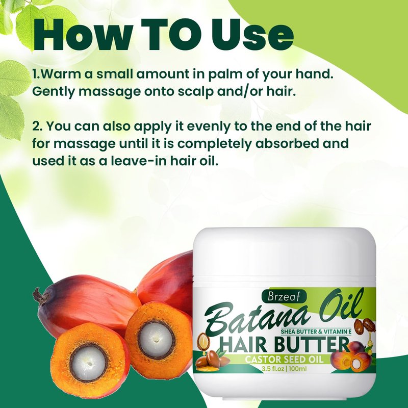 This Batana oil is designed to enhance the overall health of your hair. It may help strengthen your hair,reduce hair breakage and moisturize your scalp,improve dryness, leaving your hair feeling softer and manageable.