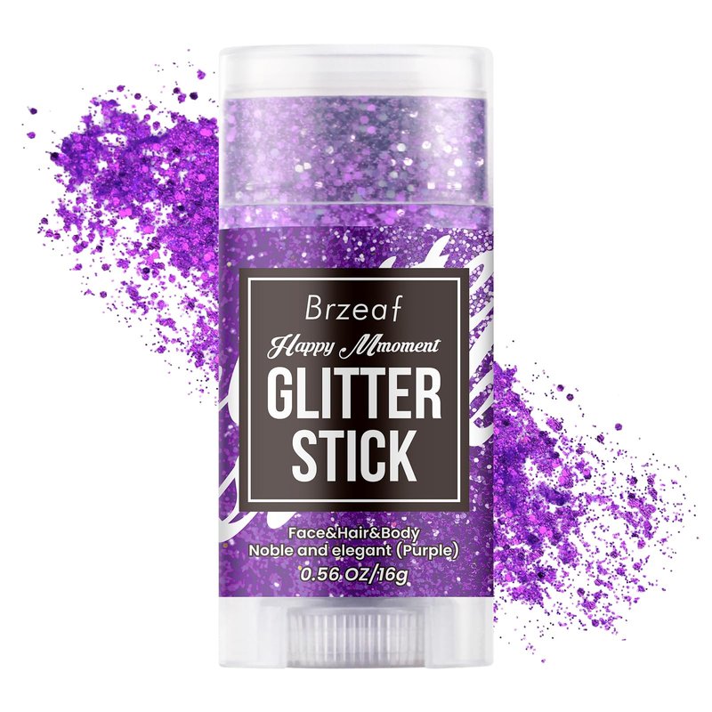 Brzeaf Waterproof Purple Glitter Stick, Shimmery & Long Lasting, Chunky Glitter for Face/Body/Hair/Eyes, Singer Concert Music Rave Festival, Glitter Stick Makeup & Face Glitter Gel for Women Men