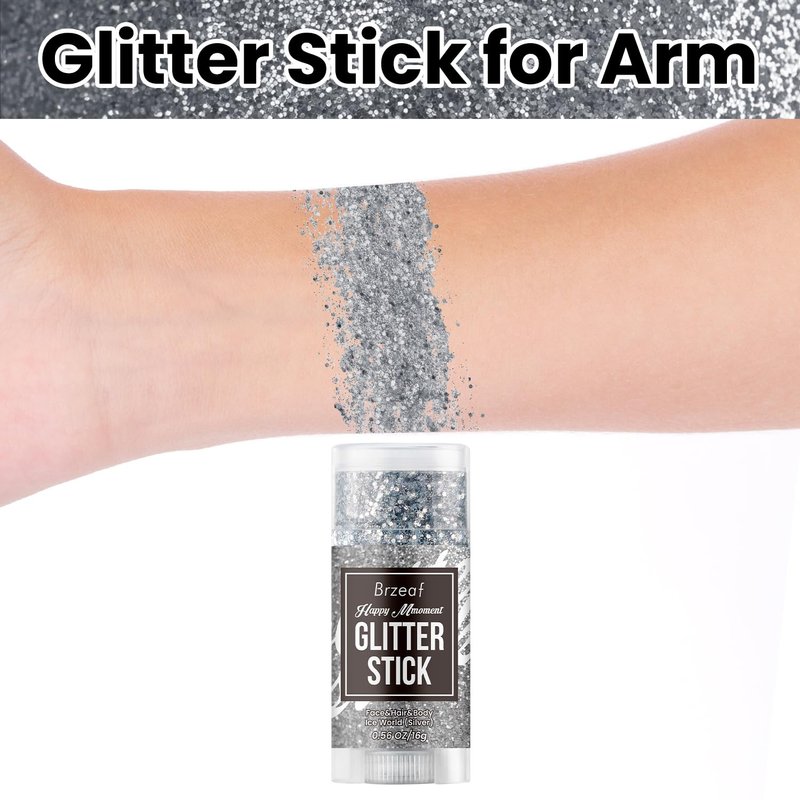 Brzeaf Waterproof Silvery Body Glitter Stick, Safe Ingredients & Long Lasting, Hair Eyeshadow Face Body Glitter, Singer Concert Music Christmas Rave Festival, Glitter Stick Makeup & Face Glitter Gel