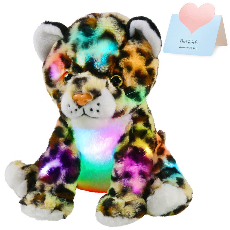 Bstaofy Light up Cheetah Plush LED Leopard Stuffed Animals Night light Companion Bedtime Jungle Toys Glow Afraid of Dark, 10’’