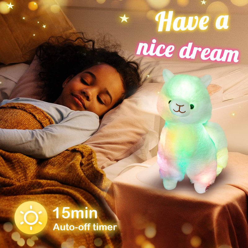 BSTAOFY 13.5'' Light up Alpaca Stuffed Animals LED White Llama Soft Plush Toy with Colorful Night Lights Glow Bedtime Pal Gift for Toddler Kids on Birthday Holiday Valentines Day