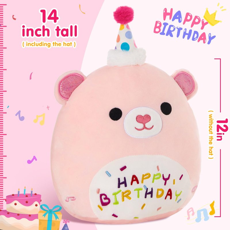 • Perfect Birthday Gift and Decor: Loved by people of all ages for its cuteness and versatility, this singing pink birthday teddy bear pillow plush makes an excellent birthday gift. Whether it's for boys, girls, or friends, the recipient is sure to be delighted and satisfied. It can even double as a sleeping aid when accompanying your kids to bed.
