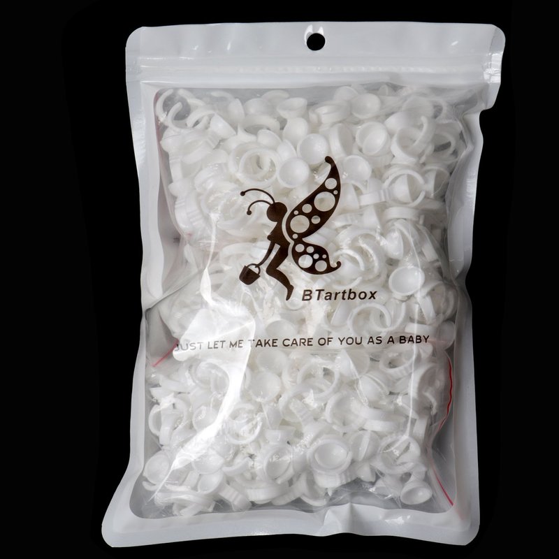 BTArtbox 300PCS Tattoo Rings Cups Disposable Glue Holder Plastic Tattoo Ink Pigment Ring Adhesive Makeup Rings Palette For Eyelash Extension Nail Art