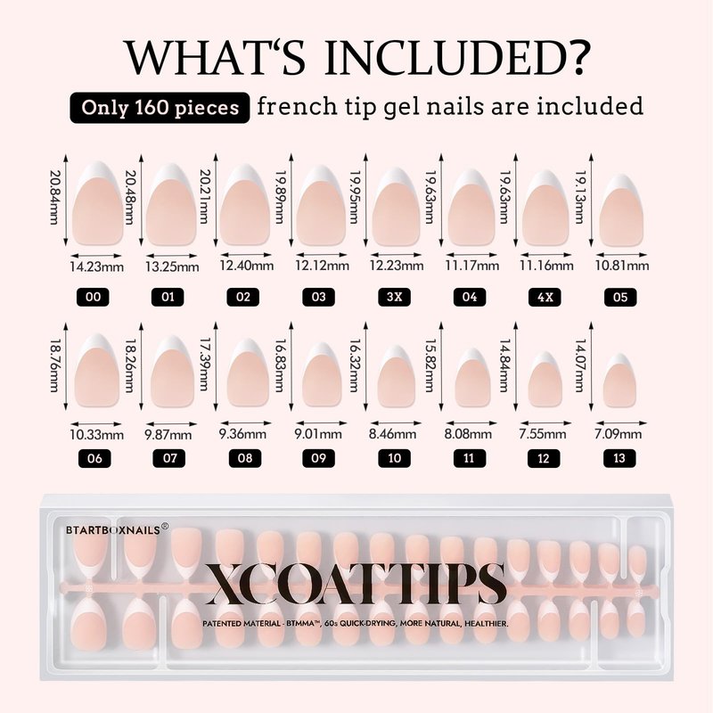 - IDEAL FOR FRENCH MANICURE: Btartboxnails XCOATTIPS french tip press on nails(top coat needed) set bring you the netural nude color and the classic french design. Ready to go with one bulider gel and one top coat. Also you could create your unqiue deisgn with it in less steps.