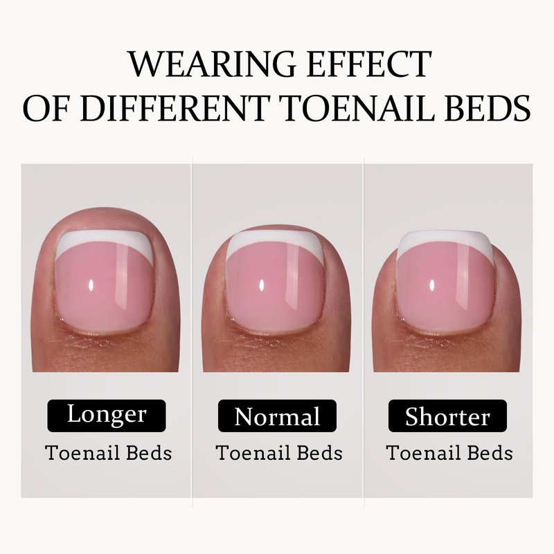 - 6 SIZES FOR SHORT THUMB TOENAILS: Only 160pcs french tip toe nail tips are included. No accessories included. Upgraded 6 sizes for short thumb toenails, any length and width toenail beds can be found the right size! Just stick them on your toenails with gel glue then apply one layer of builder gel and top coat and done! DIY toenail art in minutes