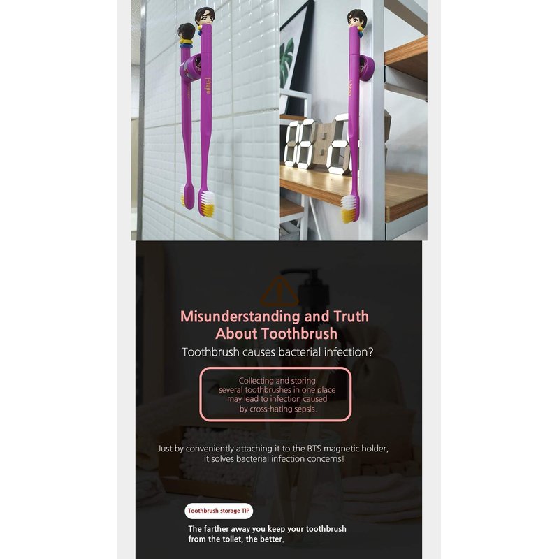 • BTS (Bangtan Boys) K-Pop Idols Character Figure Toothbrush with convenient Magnetic Holder that can be attached to the wall and promote healthy brushing and good overall dental hygiene habits