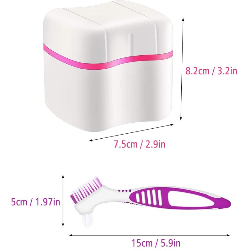 BTwood - Denture Bath Kit - Includes 2 Denture Bath Cups + 2 Denture Cleaner Brushes + 2 Strainer Baskets - Ideal for Dentures, Retainers & Mouthguards, 1.0 Fl Oz