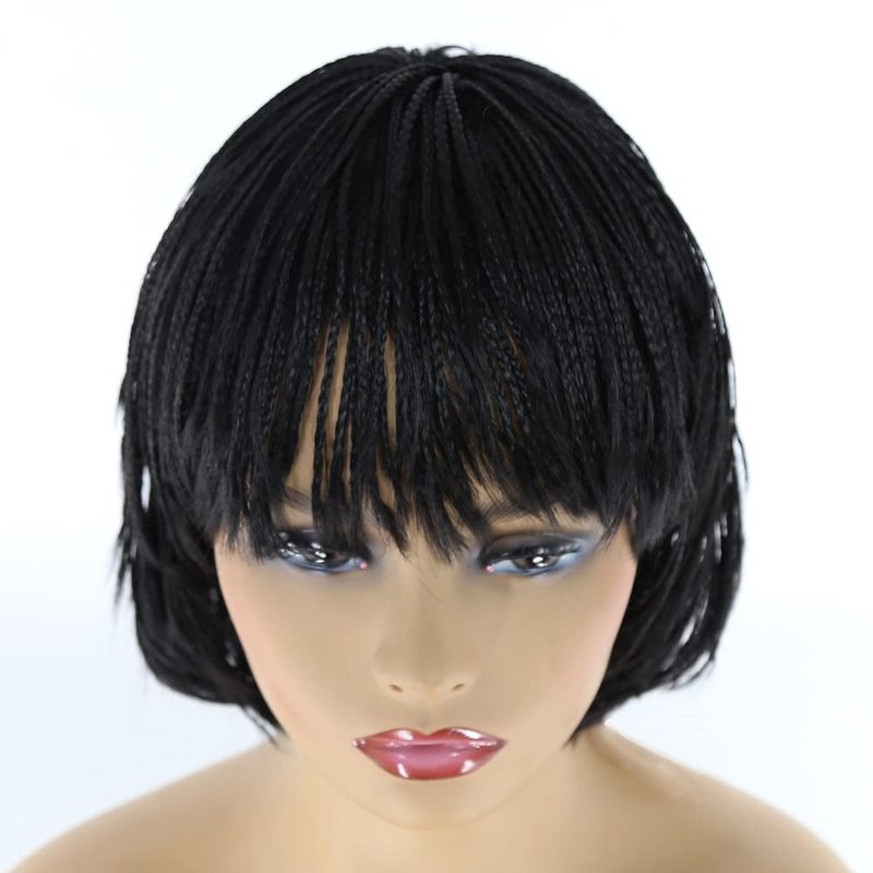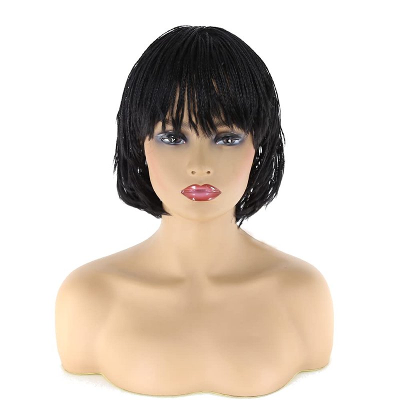 BTWTRY Black Synthetic Short Braided Bob Wigs for African American Women with Adjustable Elastic Band Small Box Braided Synthetic Wigs (Short Hair, Black)