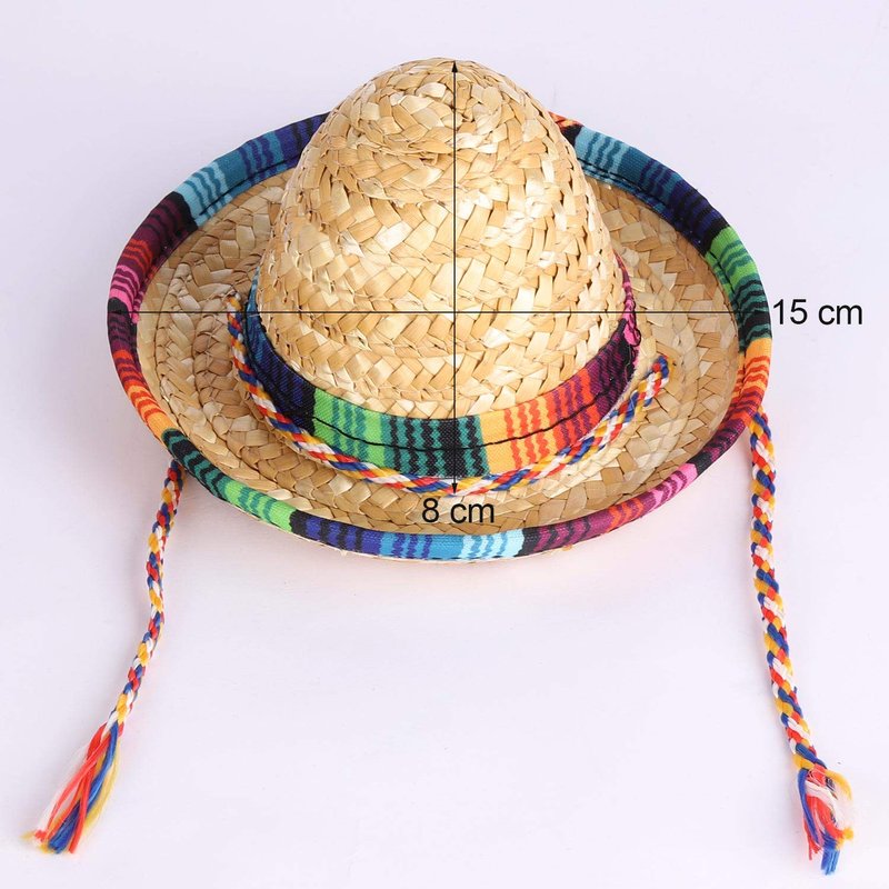 - Mini size, sombreros diameter 5.9 inch; rope length: 33 inch. 8 Pcs Mini Sombrero Party Hats made of natural straw material, durable. Suit for pets/party/table decorative
