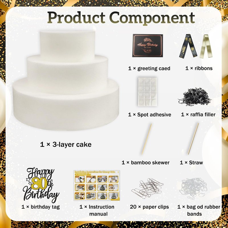 - 【80th Birthday Money Cake】Do you want to surprise your friend gift ?Nothing is more exciting and surprising than receiving money as a gift. This birthday money cake is an excellent choice for any occasion!fake cake gift box treats come with everything you need to DIY your birthday event giveaways. Let who receiving exclusive gifts feel your heart.